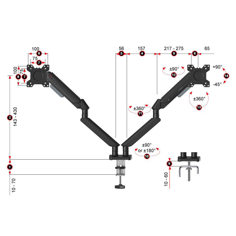Lengan Monitor NOX menawarkan ๐ฝ๐๐๐ฎ๐ฟ๐ฎ๐ป ยฑ๐ต๐ฌยฐ dan ๐ธ๐ฒ๐บ๐ถ๐ฟ๐ถ๐ป๐ด๐ฎ๐ป +๐ต๐ฌยฐ ๐ต๐ถ๐ป๐ด๐ด๐ฎ -๐ฐ๐ฑยฐ di kedua lengan, memudahkan pencapaian sudut pandang ideal. Masing-masing lengan bergerak independen, memberi kendali penuh atas rentang gerak luas. Sempurna untuk multitasker, kreator, dan profesional yang menuntut presisi di setiap pergerakan.