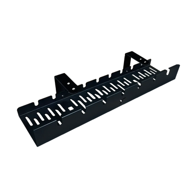 Agar ruang kerja bebas dari kekacauan, tambahkan solusi manajemen kabel. Selipkan kabel ke celah yang tersedia pada baki pengatur kabel berukuran penuh untuk memudahkan manajemen kabel tanpa harus memindahkan apa pun.